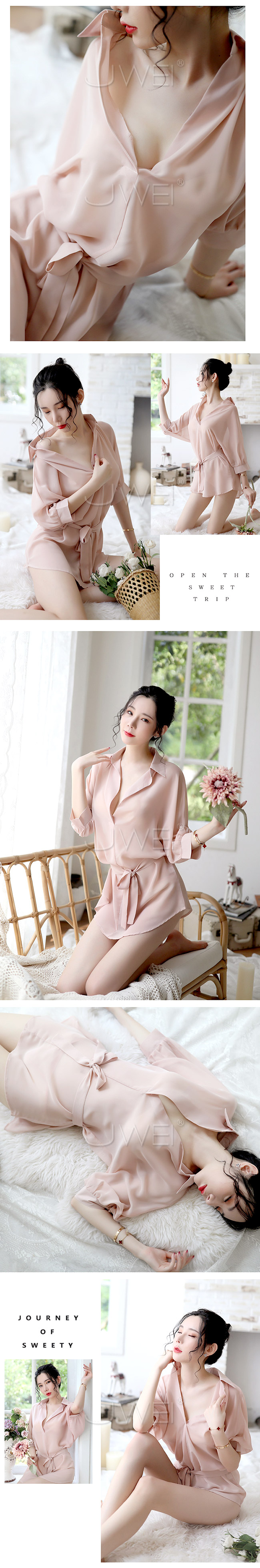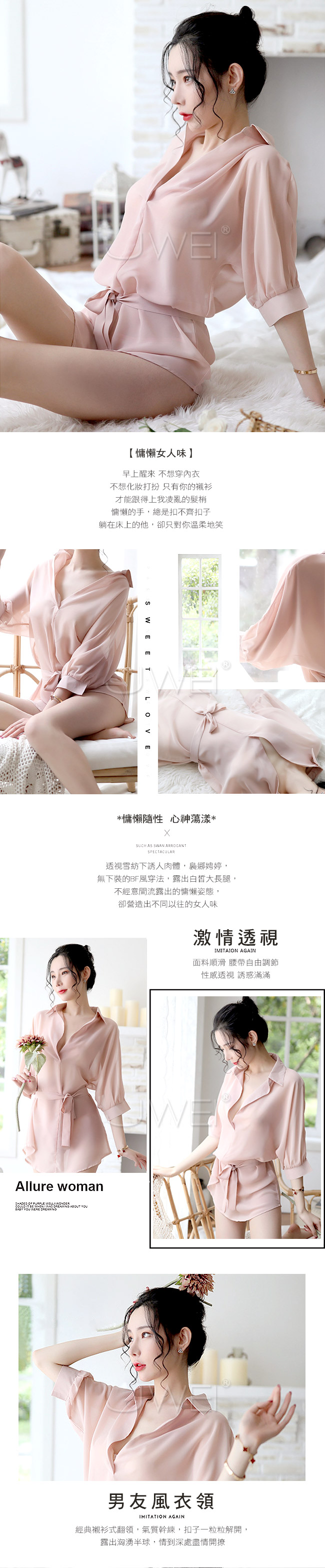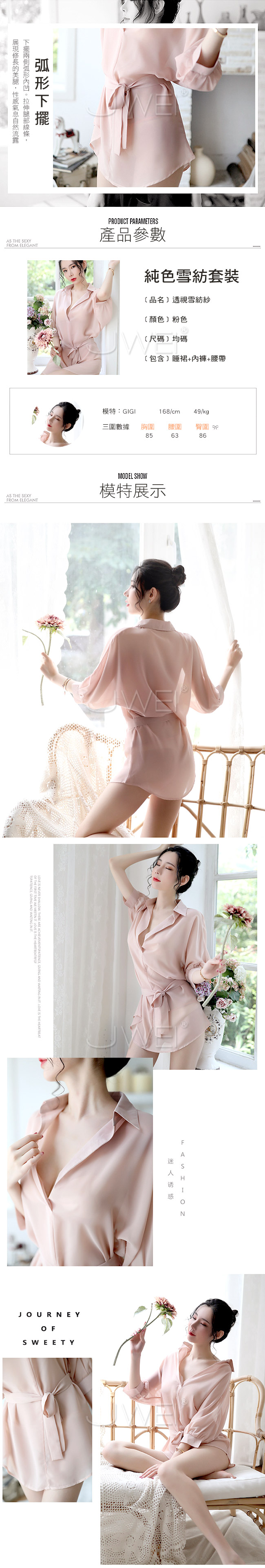 ►您現在的位置:首頁>慵懶晨曦.薄透男友襯衫束腰雪紡睡衣(粉色)