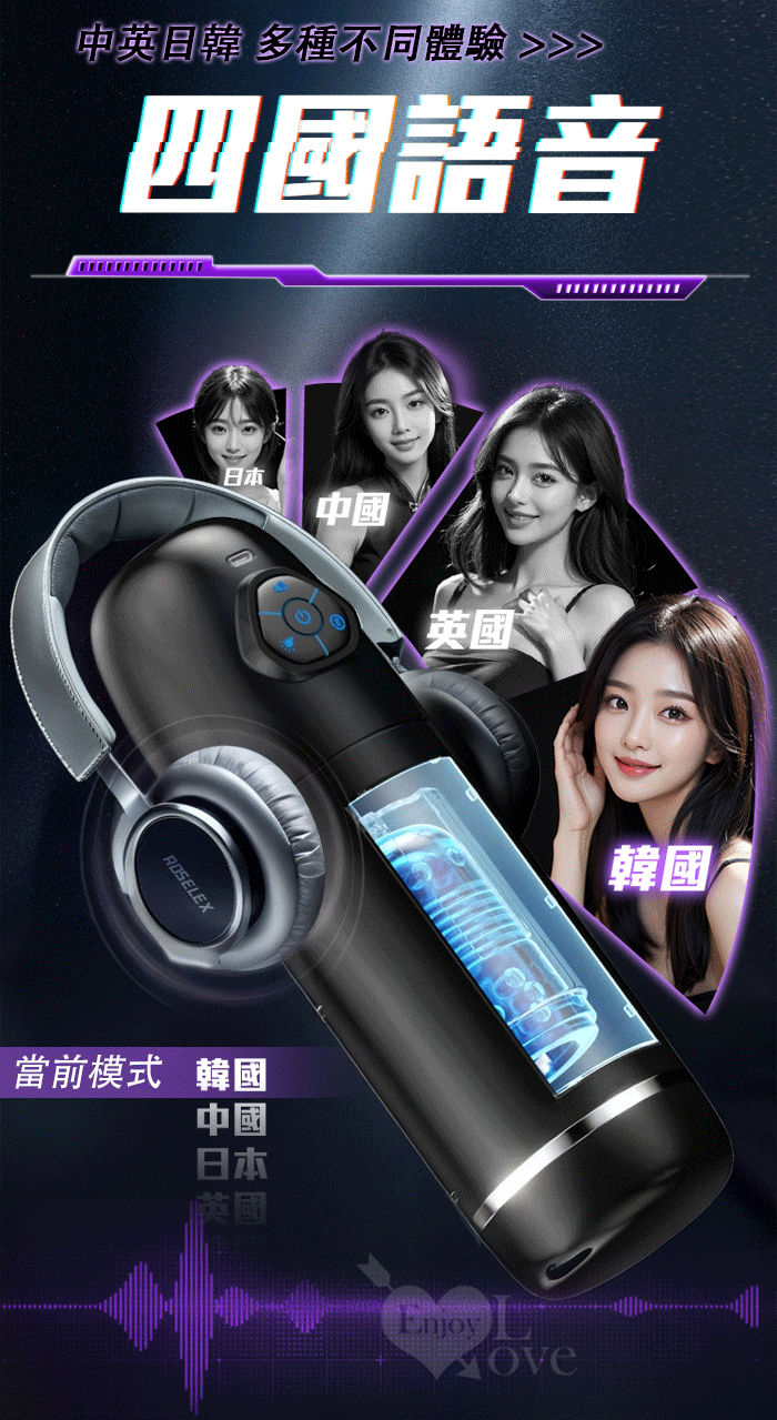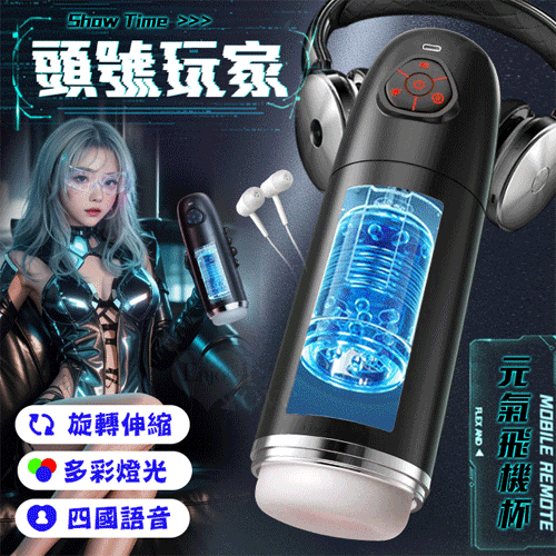 | ROSELEX勞樂斯.頭號玩家 10頻伸縮旋轉透明腔道元氣飛機杯﹝四國語音呻吟+多彩氛圍燈+耳機﹞