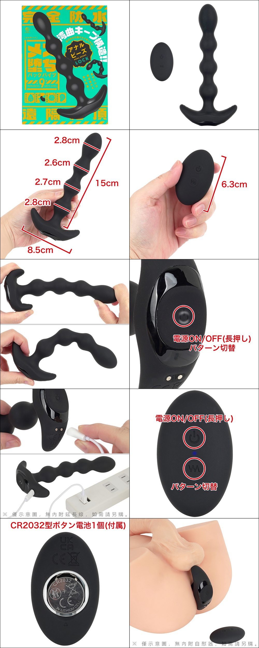 | 【日本HATOPLA】雌墜9頻可彎遙控震動後庭拉珠