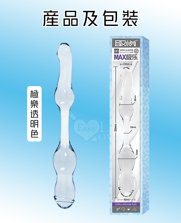 | 取悅 ‧ MAX極樂!XXXL巨大型雙頭水晶按摩棒-前陰後庭/男女皆適用﹝透明色﹞