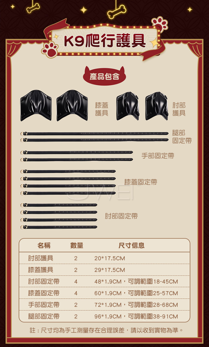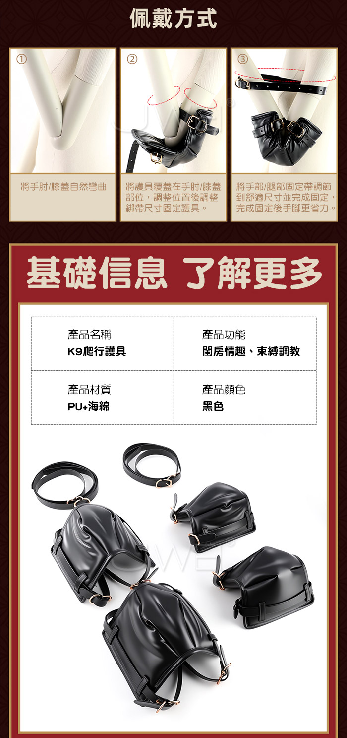 K9爬行護具.肘膝防護加厚海綿 SM房事調教束縛套裝