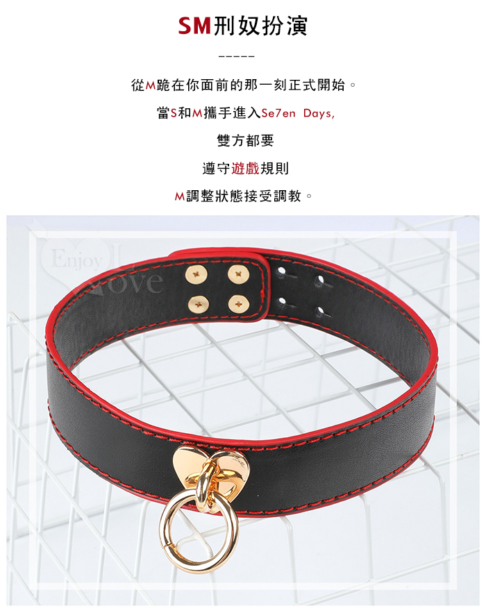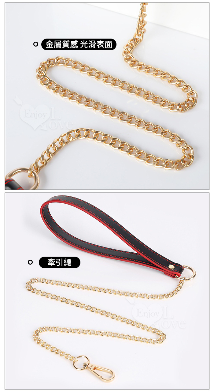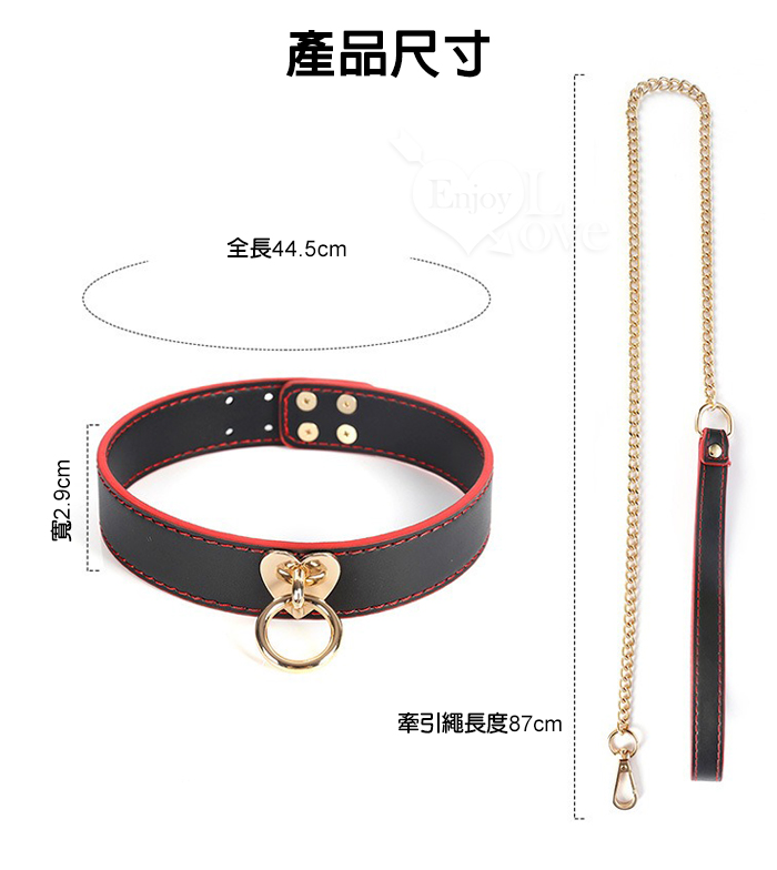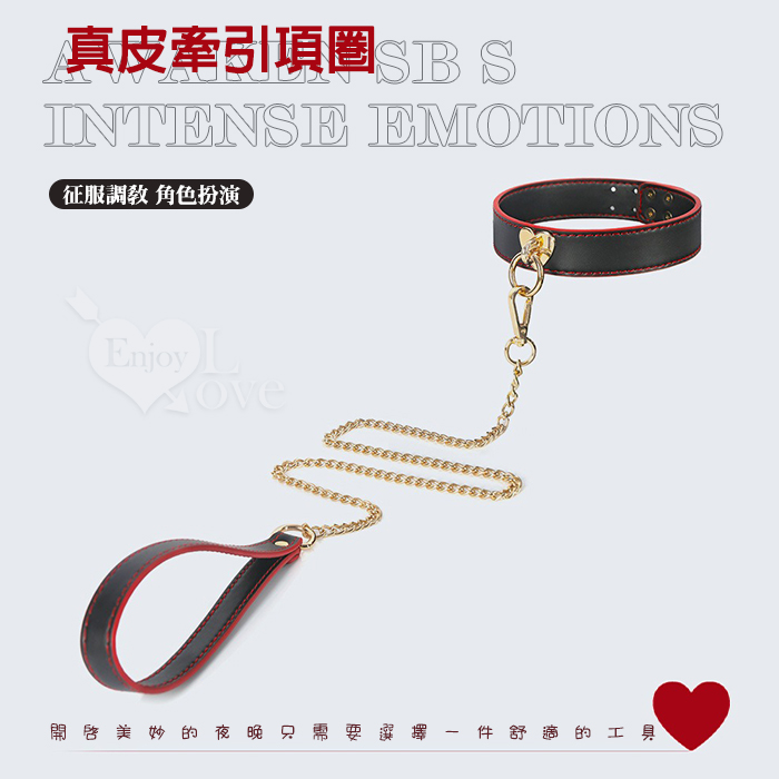 | SM 刑奴扮演 ‧ 黑紅色真皮項圈+牽引繩~金屬粗鐵鏈組合