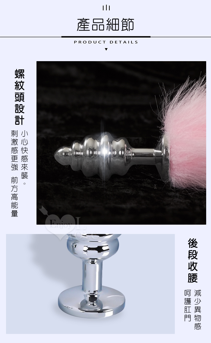 ►您現在的位置:首頁>Sporting激性扮演遊戲 ‧ 人造毛尾巴+不銹鋼螺旋頭後庭肛塞 - 粉﹝可組裝拆卸﹞