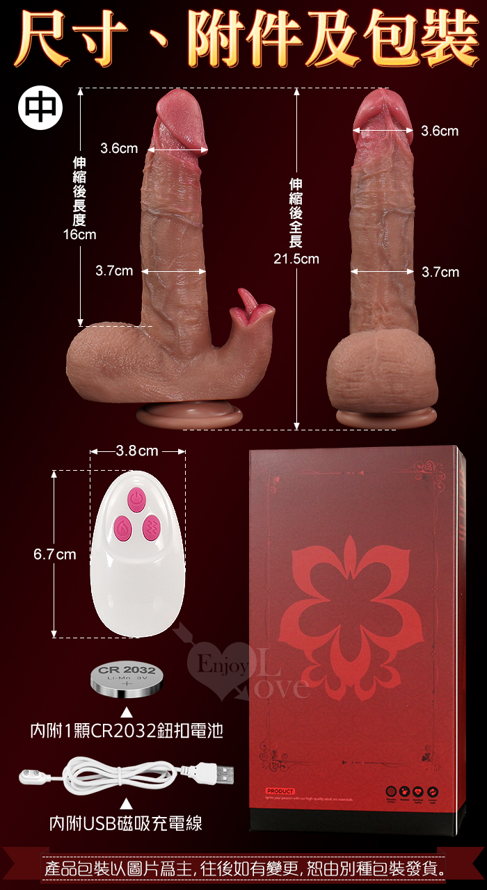 ►您現在的位置:首頁>樂翻天Ⅱ代.伸縮衝撞+舌戰撩震 無線遙控超仿真肉感描青筋血管老二棒-中﹝9頻雙調控+智能加溫+強力吸盤+磁吸充電﹞