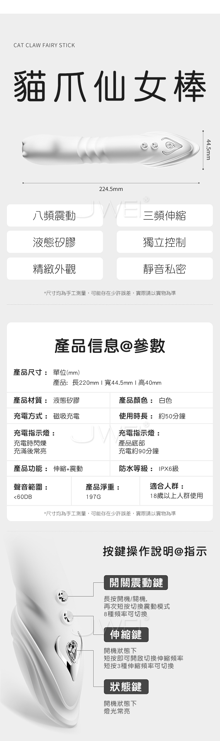| 貓爪仙女.3段伸縮+8檔強震 M型頂攻G點剮蹭加溫按摩棒【旗艦版】