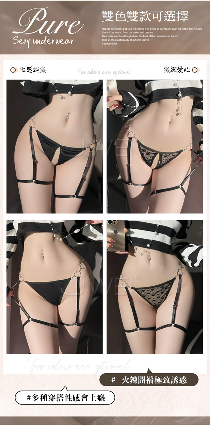 極夜誘惑.愛心鏈條綴腰吊帶低腰開襠褲【黑網愛心】