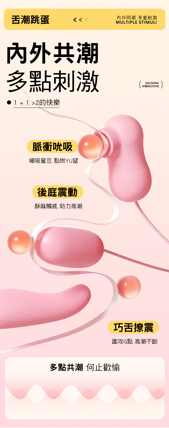 | 舌潮.10x10頻脈衝吮吸 巧舌撩震 內外共潮 USB直插情趣跳蛋【三跳款】