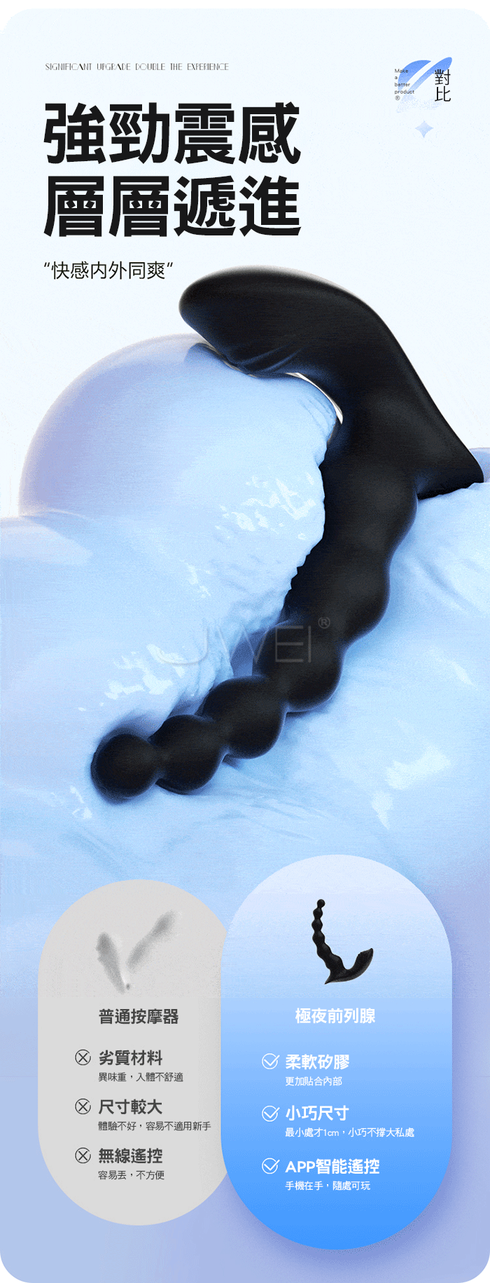拉珠摩擦 無射快感!極夜前列腺,10頻穿透強震 層層遞進! 軟糯矽膠,舒適入體“柔軟不疼”外震蜜豆,挑逗咪咪 遠程控制,指尖把玩“距離不在是難題” 產品規格 ■材質: 矽膠+ABS ■規格: 詳如圖片標示 ■功能: 10頻震動、APP智控