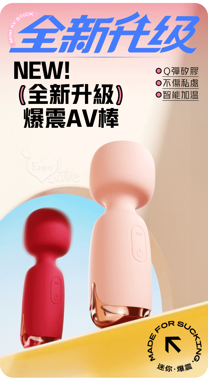 | ROSELEX 勞樂斯 ‧ NEW全新升級~妙巢爆震AV棒 10調頻/智能加溫/小巧随身360度彎曲AV棒﹝櫻花粉﹞