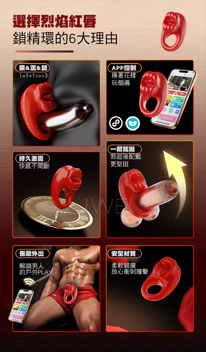 ►您現在的位置:首頁>GALAKU.烈焰紅唇 10頻酥麻強震 邊啪邊震 APP智控震動鎖精環