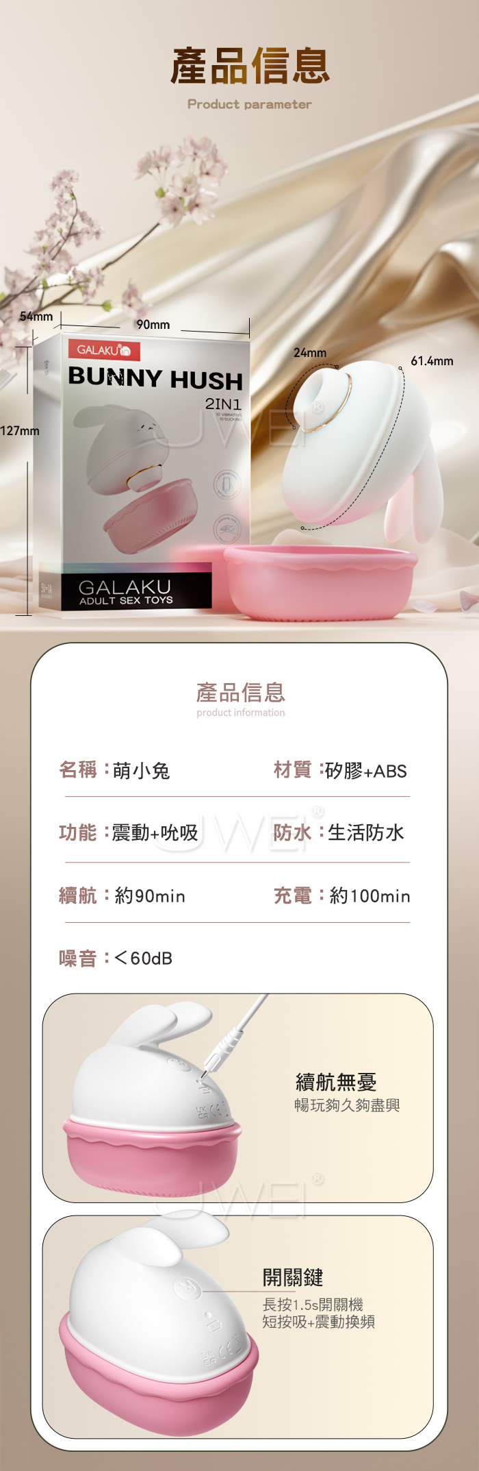 | GALAKU.萌小兔 10頻潮吸震顫 一鍵吸震可愛防塵收納 APP智控萌趣跳蛋