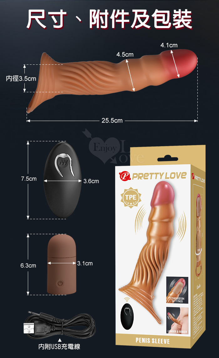 | 派蒂菈 ‧ LESLIE 萊斯利 無線遙控12變頻強勁內震動加長增粗老二束精套﹝擴展男性尺寸/男女共振享受/USB充電﹞