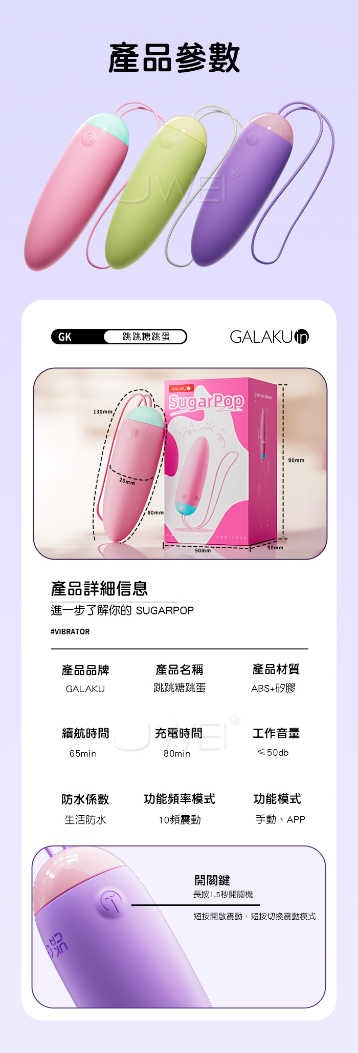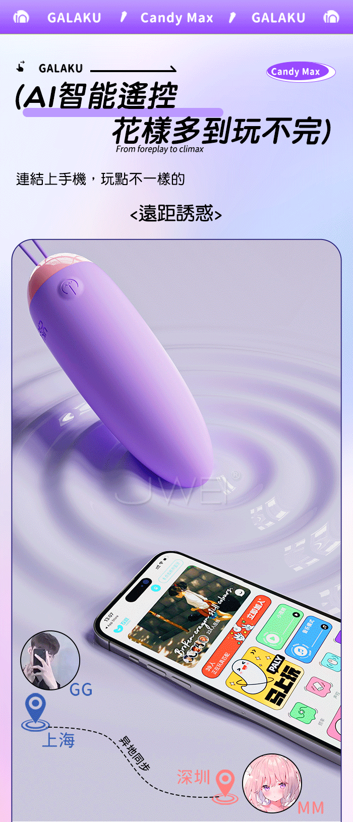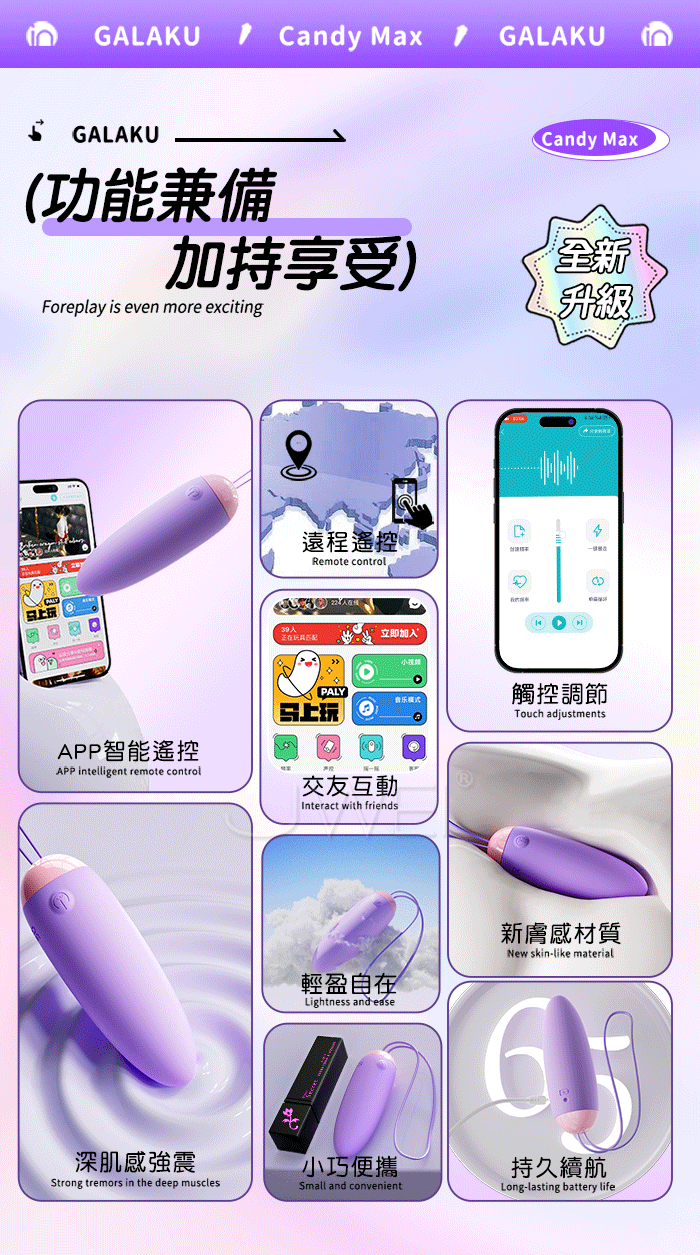 | GALAKU.跳跳糖 10頻爆跳穿透強震 深肌快感 加厚矽膠變頻跳蛋【AI智控款-紫色】