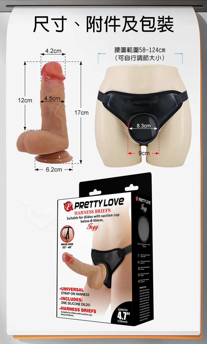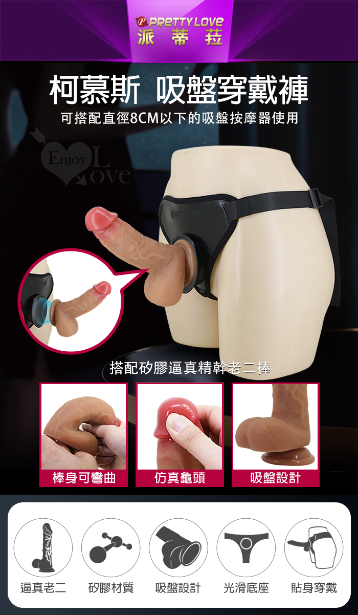 PRETTY LOVE 派蒂菈 ‧ 柯慕斯 Fogg 矽膠逼真精幹老二棒+強力吸附穿戴褲﹝可拆分通用﹞